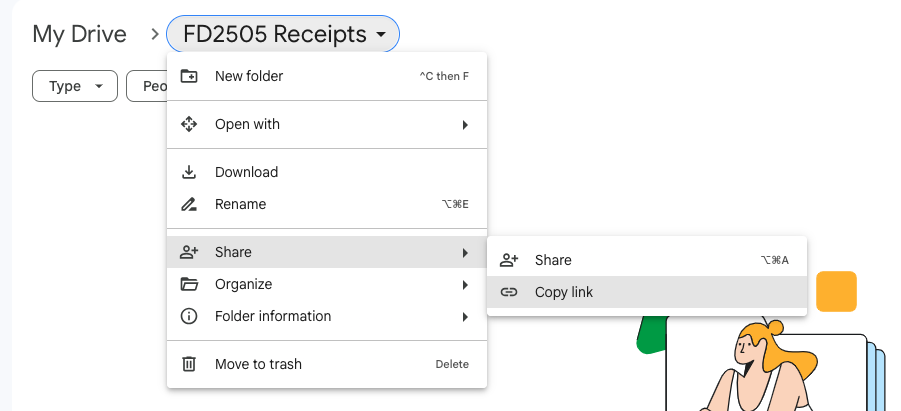Create a Receipts folder in Google Drive.
