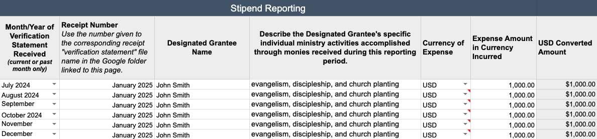 - Paste link into line 7 on your Stipend Grant Reporting tab.