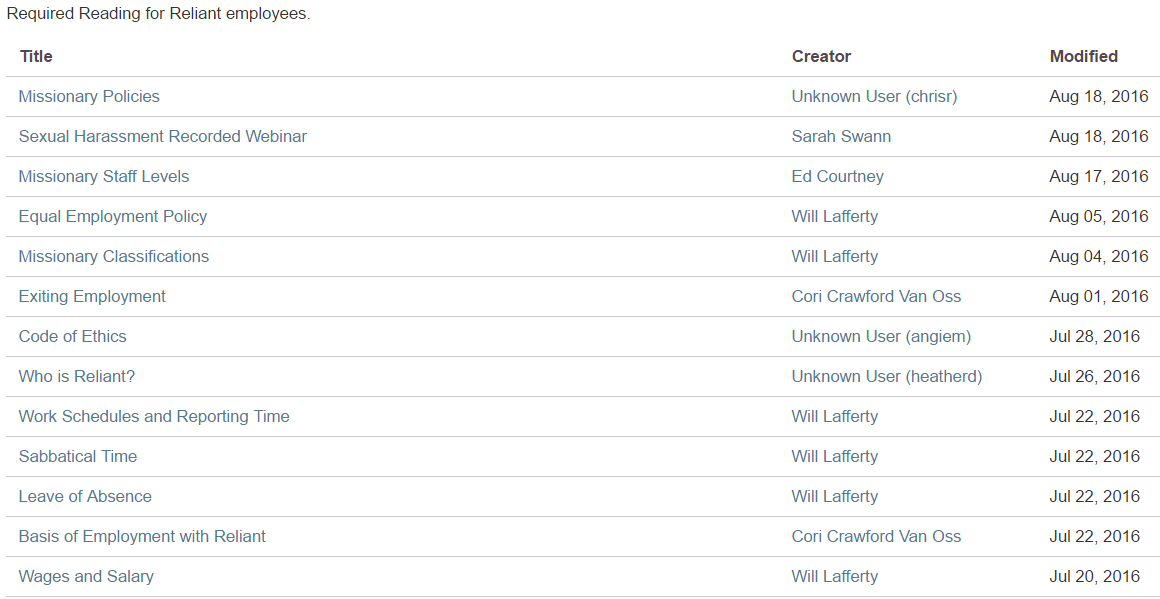 Please familiarize yourself with Reliant's Staff Policies section. It is not required that you read the entirety of the Staff Policies section at this time.