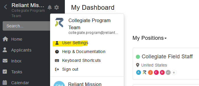 On the home page, select the gear icon in the upper left corner and then select User Settings.