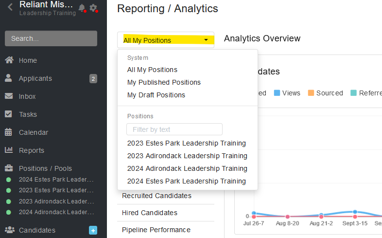 Click on the All My Positions dropdown to select the position you want to receive information on. If you aren't in other positions, you can omit this step.