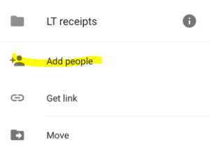 - ADD PICTURES OF EACH RECEIPT TO THE FOLDER (each photo will be an individual file uploaded to the folder). To add a picture of your receipt to the google folder simply open your photo gallery and select the photo. You will see Google Drive as an option to share with. Please name the photo image as Receipt 1, Receipt 2, to correlate with the Cash Journal for the receipts. Once you select Google Drive, you will choose MY DRIVE and then select the correct folder to upload the receipts. Once the receipts are in the correct folder the receipts are instantly shared with Reliant.