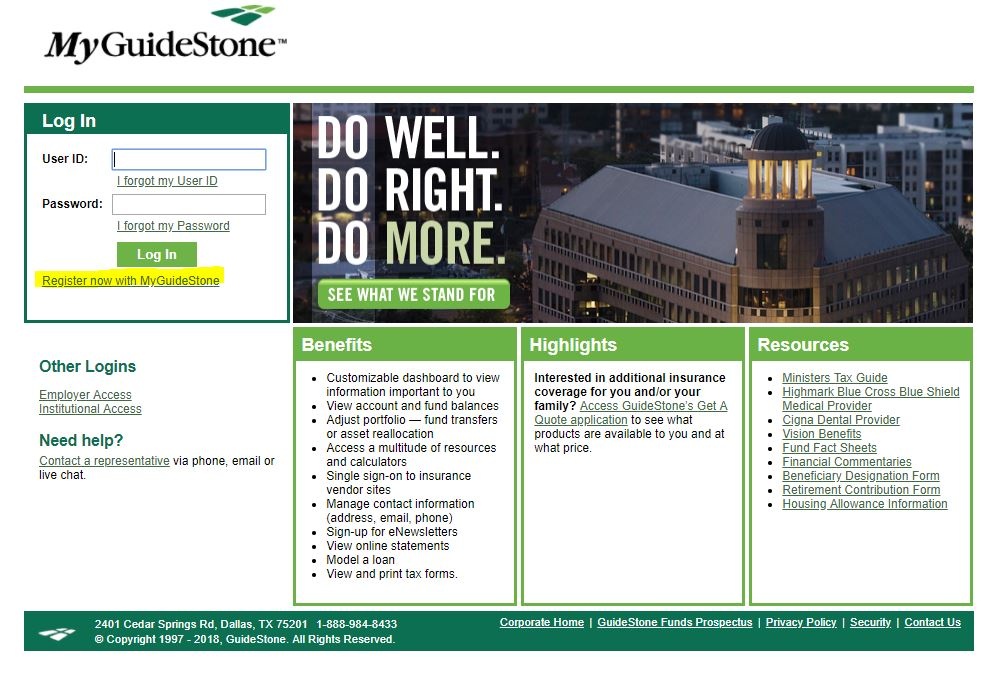 - Go to my.guidestone.org, and select "Register now with MyGuideStone."