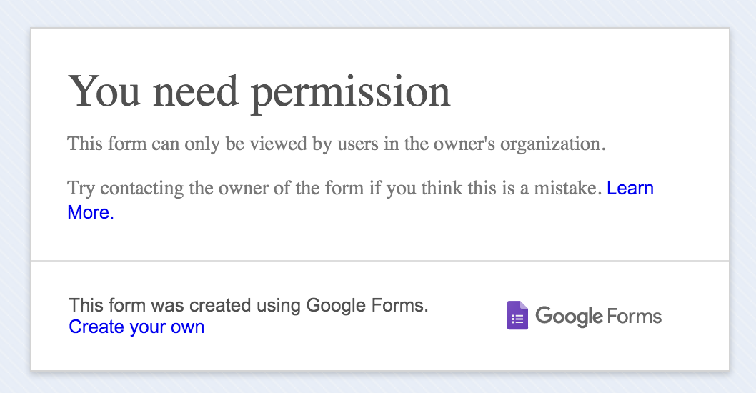 Some people are receiving errors when trying to log into google drive or open up google drive forms. A common error is this YOU NEED PERMISSION ERROR. Your browser is trying to open the form using a personal google account that it remembers (even if you have already logged out of all personal accounts). Here are some tips to get around it.