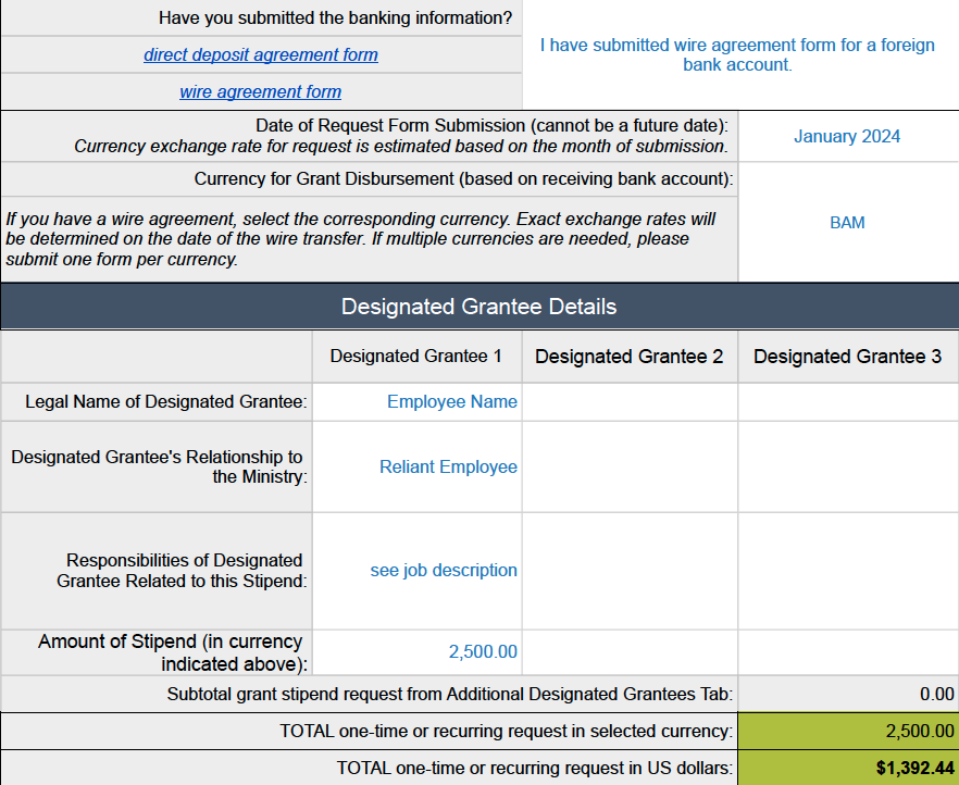 In some situations, a visa will require you to receive local income through an in-country non-profit. Reliant can accommodate this through our Grant Process.