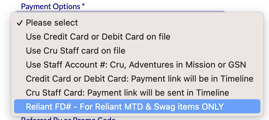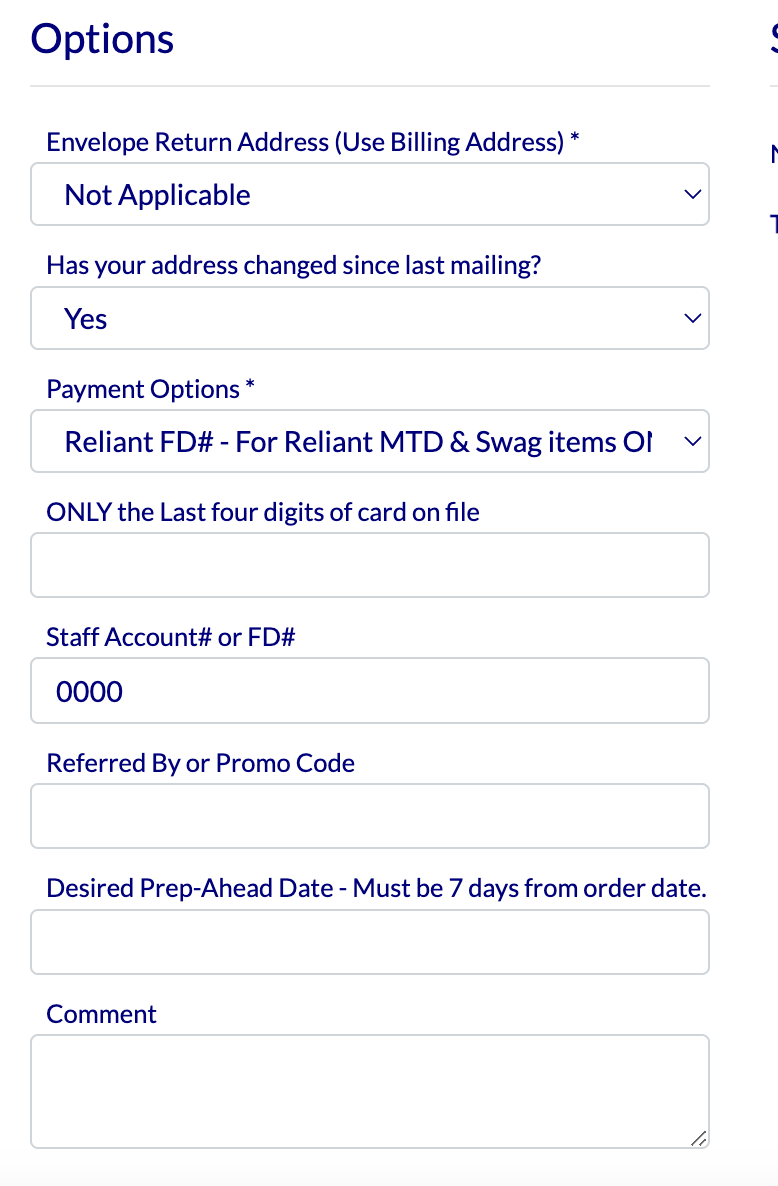 It's very important that you select the option that says "Reliant FD#". This ensures that your order goes through our Reliant billing process.