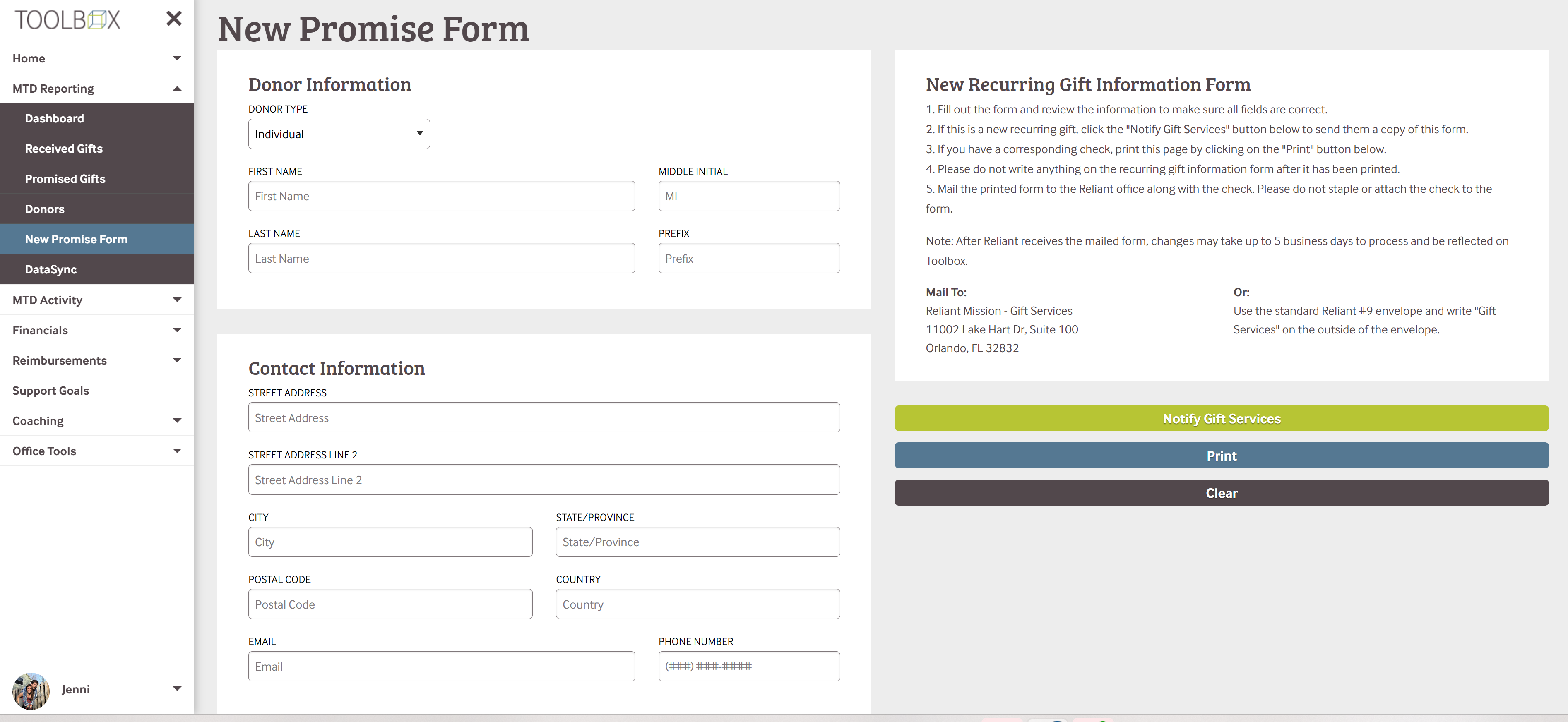 NOTE: Making any change using the New Promise Gift form is a manual process, this could take 2-5 business days to reflect on your percentage on Toolbox.