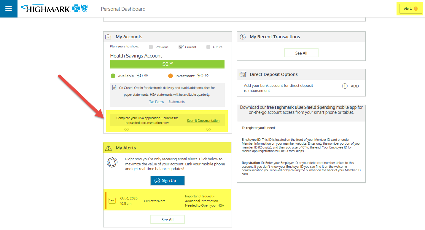 Set up your Highmark account: