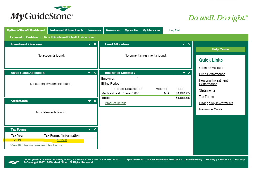 Domestic employees can find a copy of their 1095-B form in their online MyGuidestone account by Februray 1st. (For information on creating a MyGuidestone account see - MyGuideStone). GuideStone will also be mailing a copy of the 1095-B Forms to the addresses on file with GuideStone by January 31st.