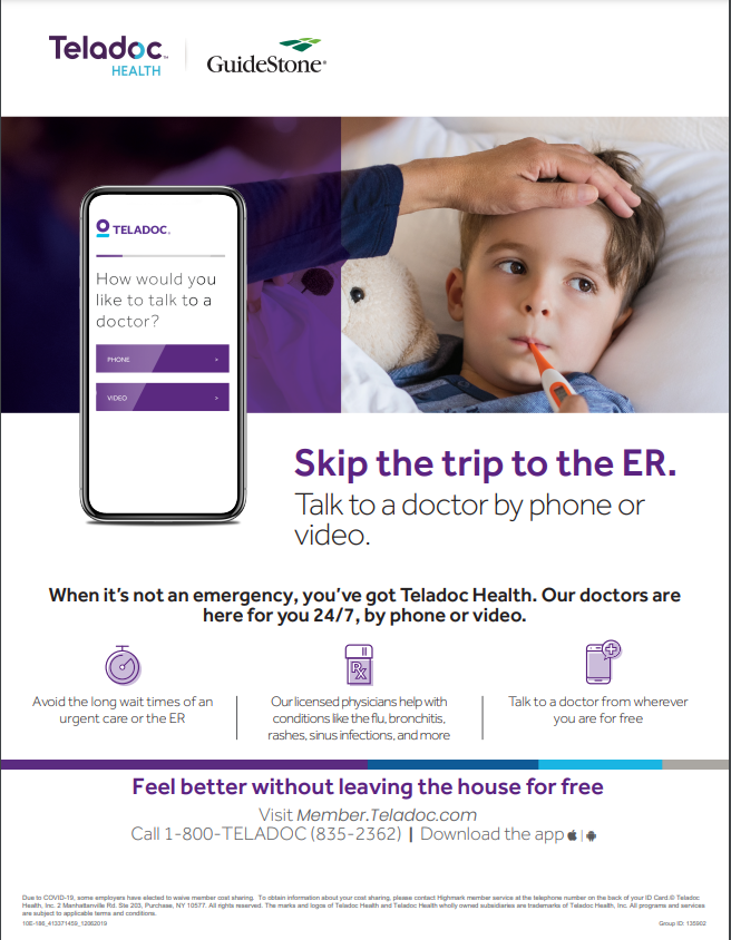 "Teladoc was indeed easy and very helpful. How easy is it? I started by taking about 5 minutes to enroll. Then I completed my medical history, which took about 10 minutes. Then I entered my HSA debit card information to request the consultation and received a phone call from the doctor within 10 minutes. Once the consultation started she really listened, took action, and told me what to do next. It was about seven minutes total. It took a little longer for the prescription to get to my pharmacy, about 65 minutes. I love the Teladoc medical history section for two reasons: A) It’s saved, and I don’t have to re-create it; B) I have a bunch of allergies; often I forget some when I’m rushing to the doctor’s office. The history form had easy add buttons to help me cover every one of my allergies. The list of prescriptions used is very similar as well. Another helpful feature on the Guidestone page is a message center where the doctor summarizes the consultation. You can ask any outstanding questions and get help there. I’m very glad I used the service. The best part is that I was on the mend within a half day and I didn’t miss more work. You can't beat the price! Only $40 for a doctor's consultation versus paying $120 - $150 just for an office visit." |