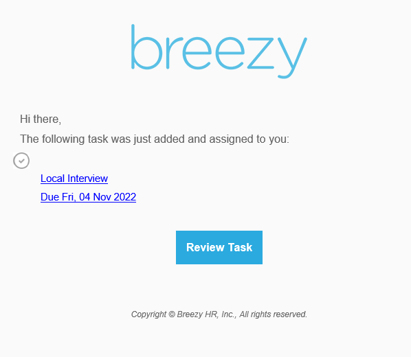 tag you in the Discussion tab and let you know it is time to sign up for a hiring call. As long as your Breezy email notifications are set up, you will receive an email alert (see Limiting Breezy Notification Emails for which notifications you should have turned on and which ones you can turn off). On the hiring call with Reliant, we will make one of three decisions: