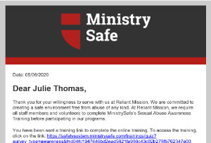 | Required training for All Staff including Missionary Staff, Associates, Interns, Supervisor & Leaders | Ministry Safe | Child and Vulnerable Adult Safety | |