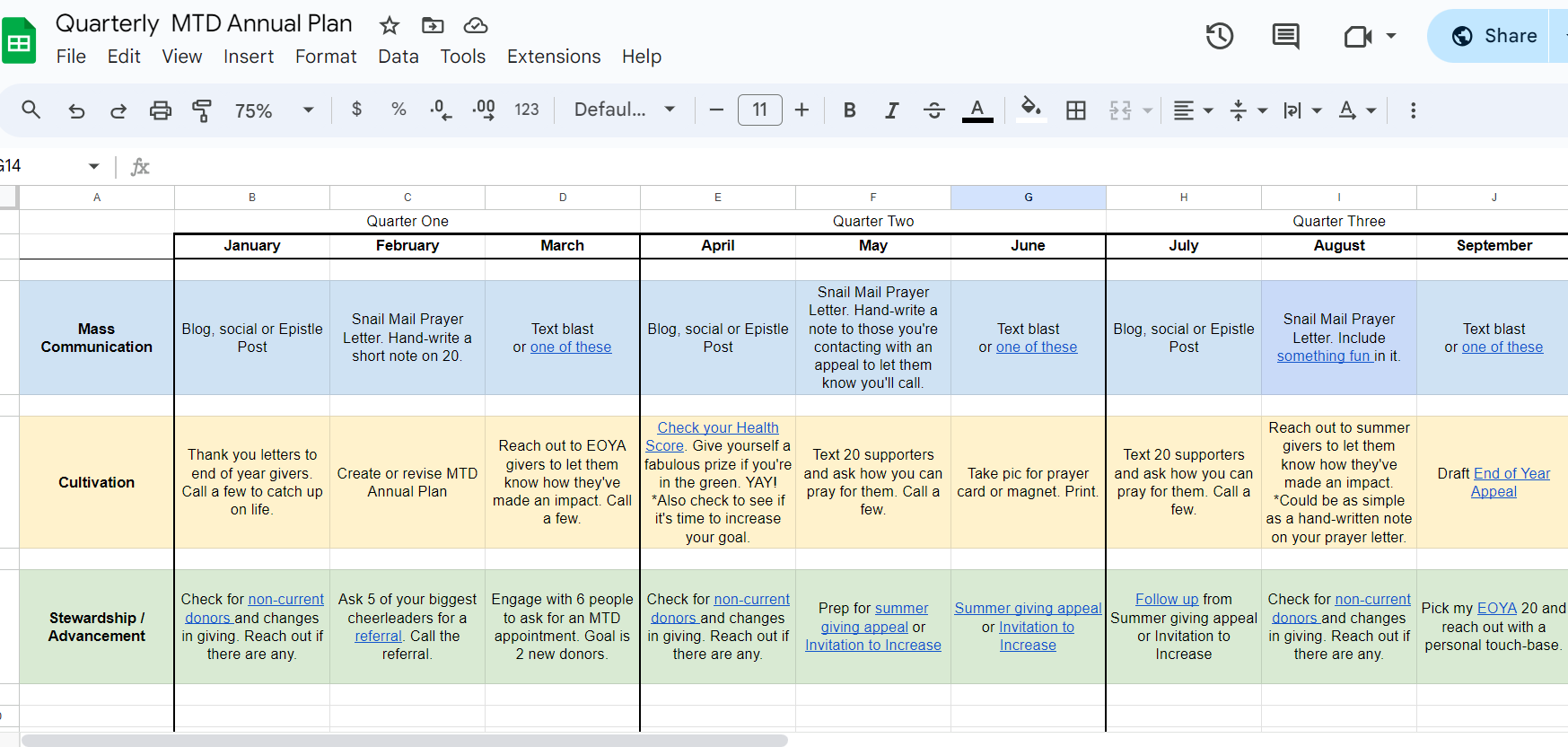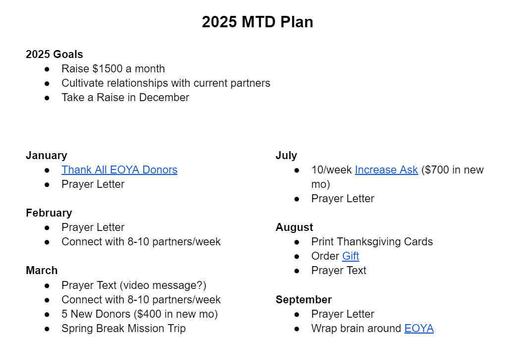 But, when looking at any plan (MTD, ministry, or even a meal plan), you have to start with the person who will be executing the plan... and that's you. So, we need to build a plan around your strengths and motivations. Second, we'll look at your supporters and build a plan that ministers to their unique needs.