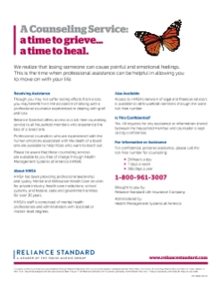 This service It is available to all benefits-eligible Reliant employees that work 30+ hour a week or more. This benefit will provide you or a member of your family with professional counseling assistance in dealing with grief and loss of a loved one. The grief counseling is provided 24 hours per day, 365 days a year through phone consultations.