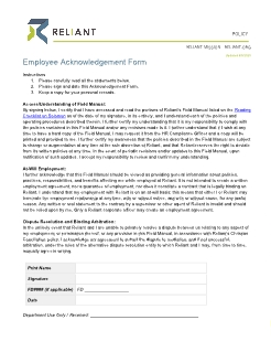 This handbook is not a contract of employment, and is not intended to create contractual obligations of any kind. Employment will be on an "at will" basis unless there is a specific written employment contract that provides otherwise. Either Reliant or the employee may terminate employment at any time, with or without notice or cause, and for any or no reason. In order to retain necessary flexibility in the administration of policies and procedures,  Reliant reserves the right to change, revise, or eliminate any of the policies and/or benefits described in this handbook at its sole discretion and at any time. Any modifications of these stated policies must be authorized in writing and signed by Missionary Resources or a Senior Executive level employee of Reliant. It is the responsibility of each employee to read and comply with the policies contained in this handbook and any revisions made to it.