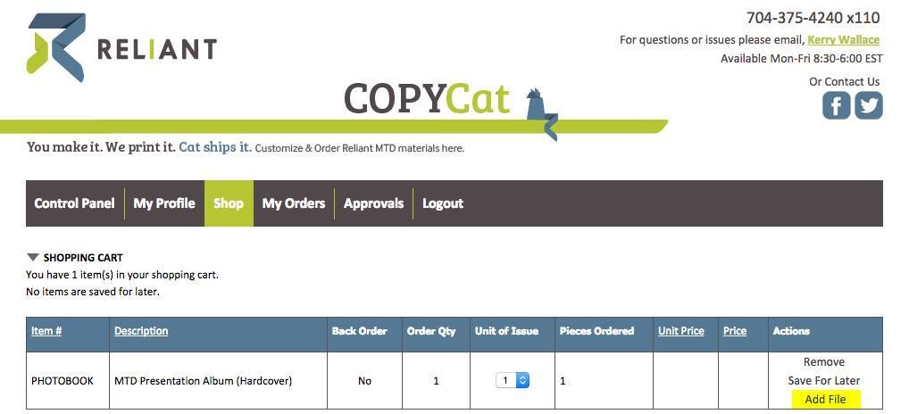 On CopyCat: Complete an Order for the MTD Presentation Album. Use steps to Add to Cart and "checkout." including adding your shipping information.