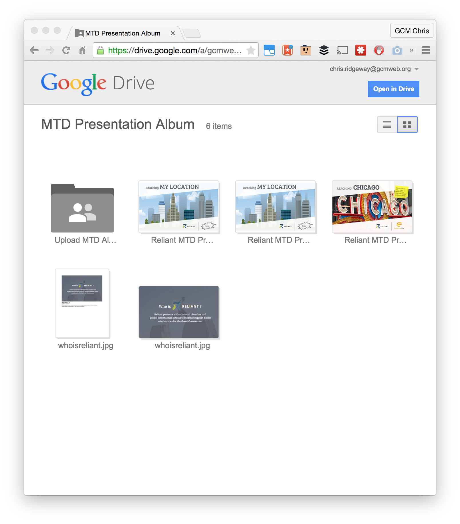 Your Reliant Google Account is assigned and most missionaries already have an account. The are typically first.last@gcmweb.org and will eventually be converted to first.last@reliant.org. Ask for help if you don't know yours. |