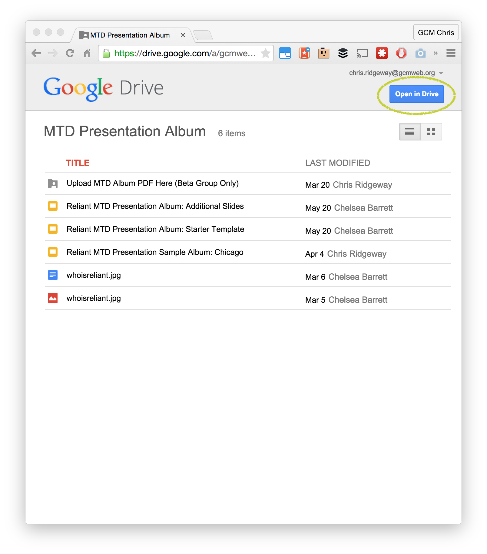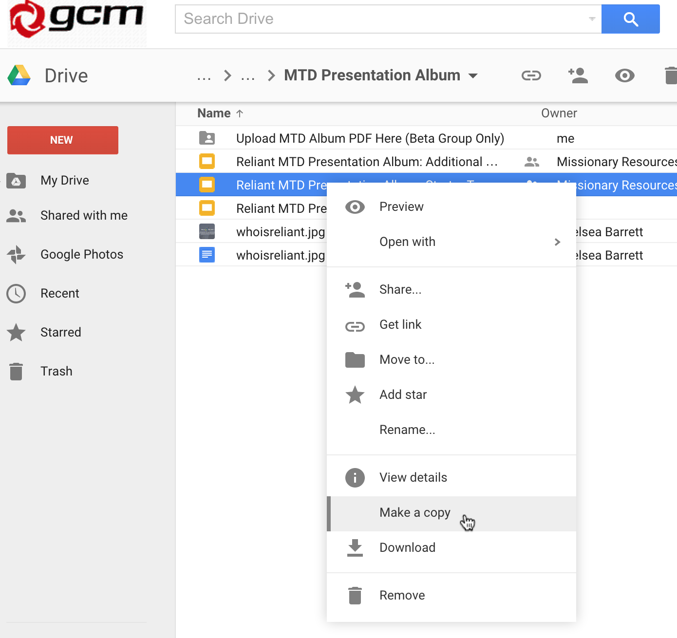 Find the Starter Template. You'll need to Make a Copy to begin editing your own copy. (You can view, but not edit, these) Rename your copy something to distinguish from others (e.g. "MyName MTD Presentation Album May 2015")